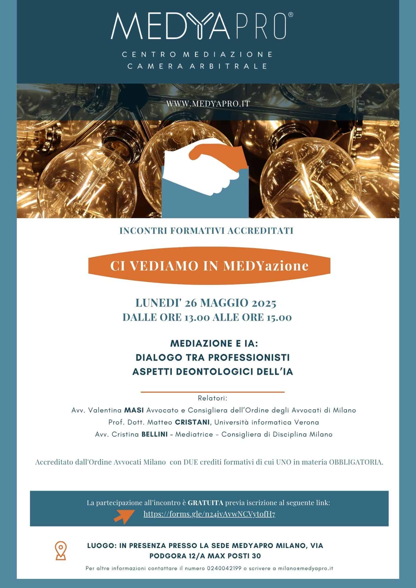 MedyaPro è lieta di annunciare un evento formativo dedicato agli strumenti di risoluzione dei conflitti per avvocati, con un focus particolare su Mediazione e IA. L'incontro si terrà lunedì 26 […]
