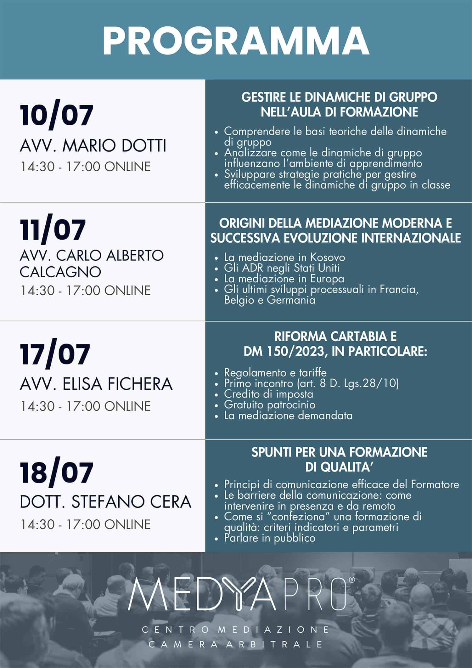 Corso di aggiornamento per formatori della mediazione 2024 - MEDYAPRO