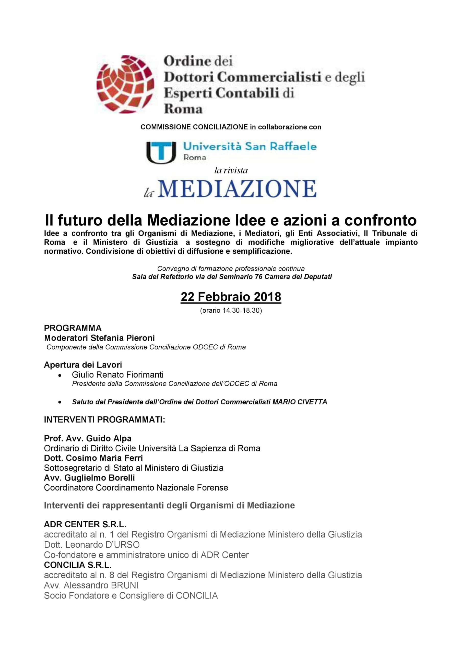 CONVEGNO “Il futuro della Mediazione Idee e azioni a confronto”