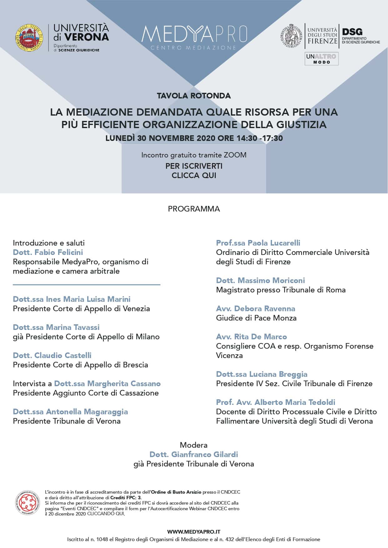 Tavola Rotonda: La mediazione demandata, quale risorsa per una più efficiente organizzazione della giustizia - MEDYAPRO