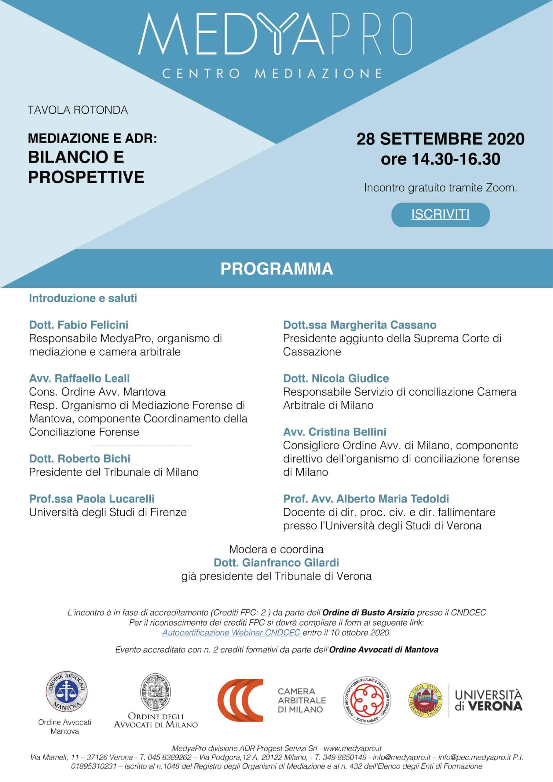 Tavola Rotonda: Mediazione ADR, bilancio e prospettive - MEDYAPRO