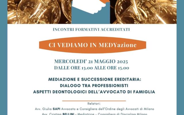 MedyaPro è lieta di annunciare un evento formativo accreditato per avvocati dedicato agli strumenti di risoluzione dei conflitti per avvocati, con un focus particolare su Mediazione e Successione ereditaria. L’incontro […]